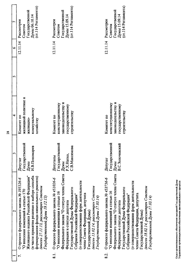 "О КАЛЕНДАРЕ РАССМОТРЕНИЯ ВОПРОСОВ ГОСУДАРСТВЕННОЙ ДУМОЙ С 11 ПО 21 НОЯБРЯ 2014 ГОДА"