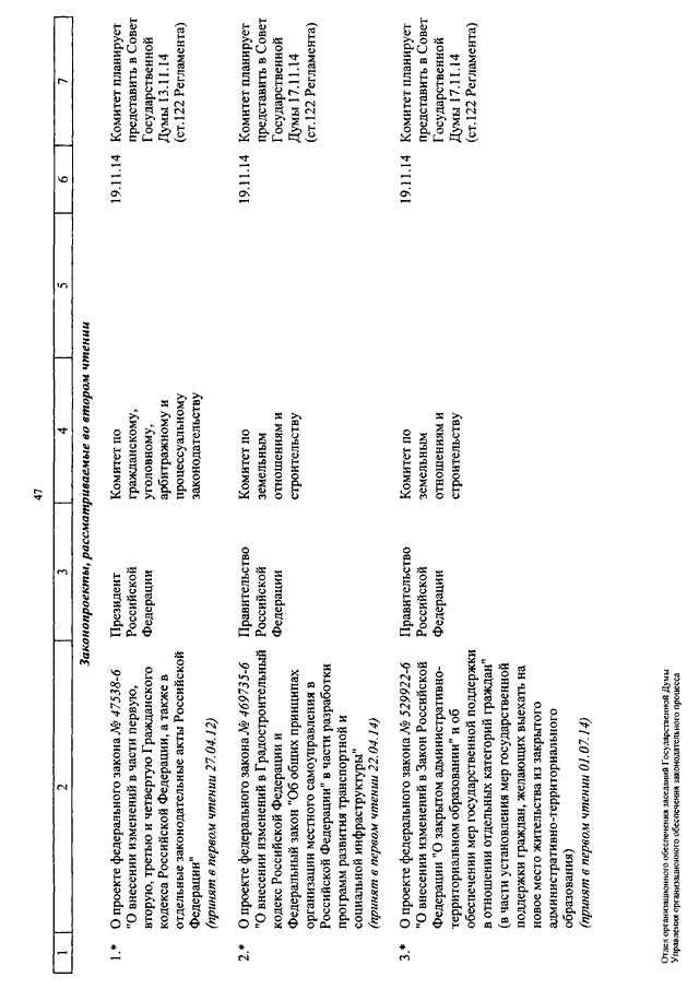 "О КАЛЕНДАРЕ РАССМОТРЕНИЯ ВОПРОСОВ ГОСУДАРСТВЕННОЙ ДУМОЙ С 11 ПО 21 НОЯБРЯ 2014 ГОДА"