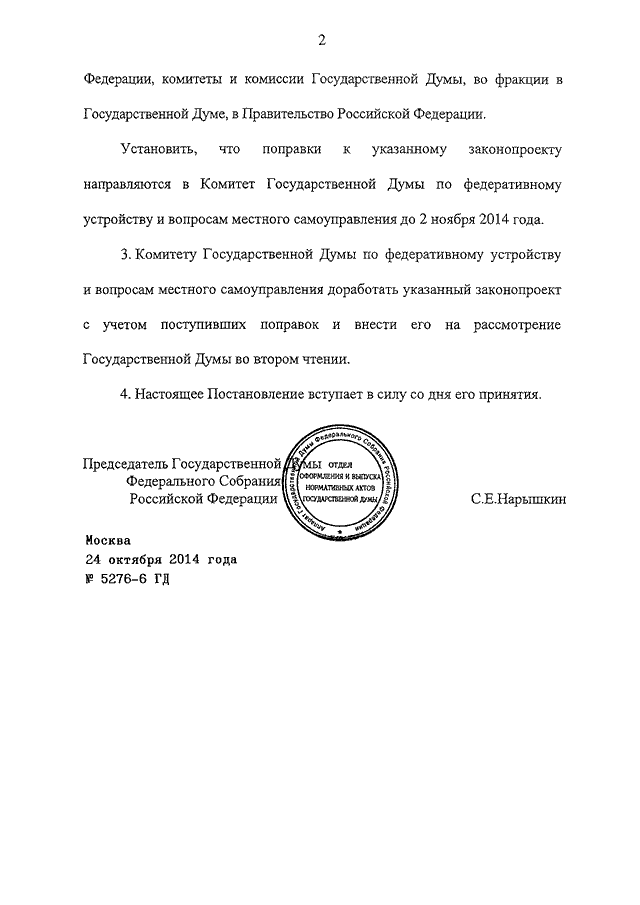 ПОСТАНОВЛЕНИЕ ГД ФС РФ от 24.10.2014 N 5276-6 ГД