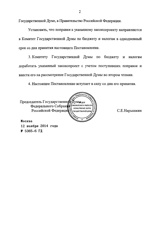 ПОСТАНОВЛЕНИЕ ГД ФС РФ от 12.11.2014 N 5365-6 ГД