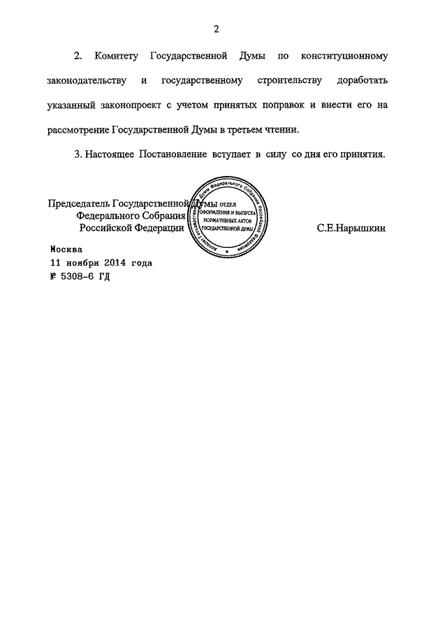 ПОСТАНОВЛЕНИЕ ГД ФС РФ от 11.11.2014 N 5308-6 ГД