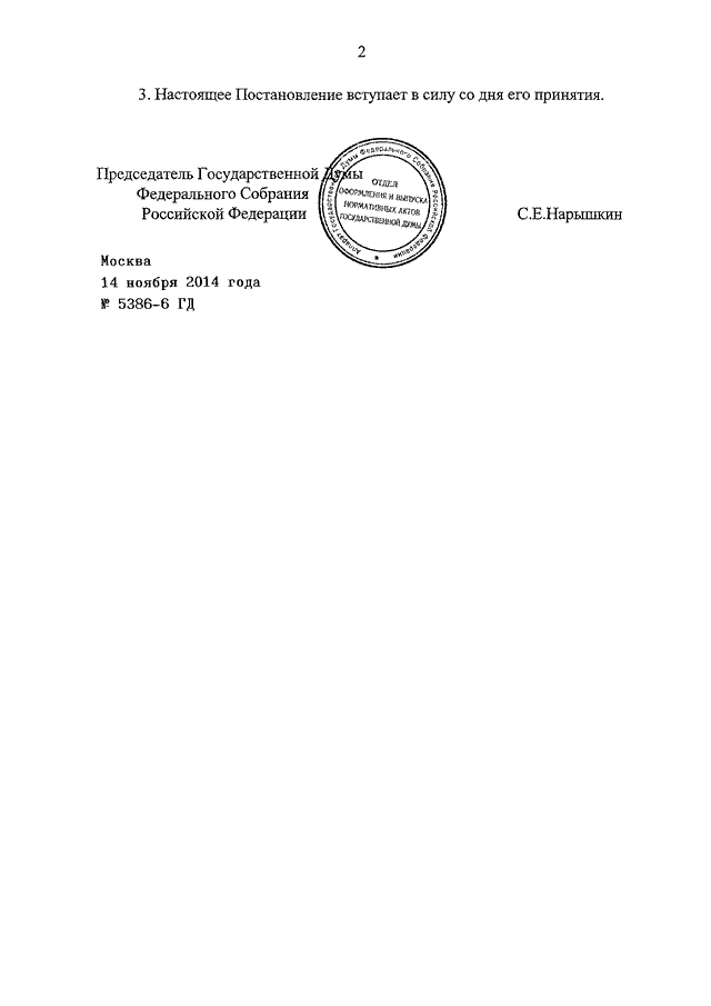 ПОСТАНОВЛЕНИЕ ГД ФС РФ от 14.11.2014 N 5386-6 ГД
