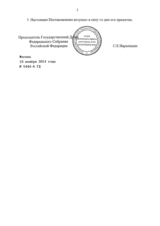 ПОСТАНОВЛЕНИЕ ГД ФС РФ от 19.11.2014 N 5444-6 ГД