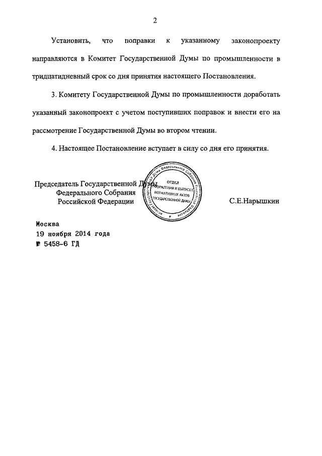 ПОСТАНОВЛЕНИЕ ГД ФС РФ от 19.11.2014 N 5458-6 ГД