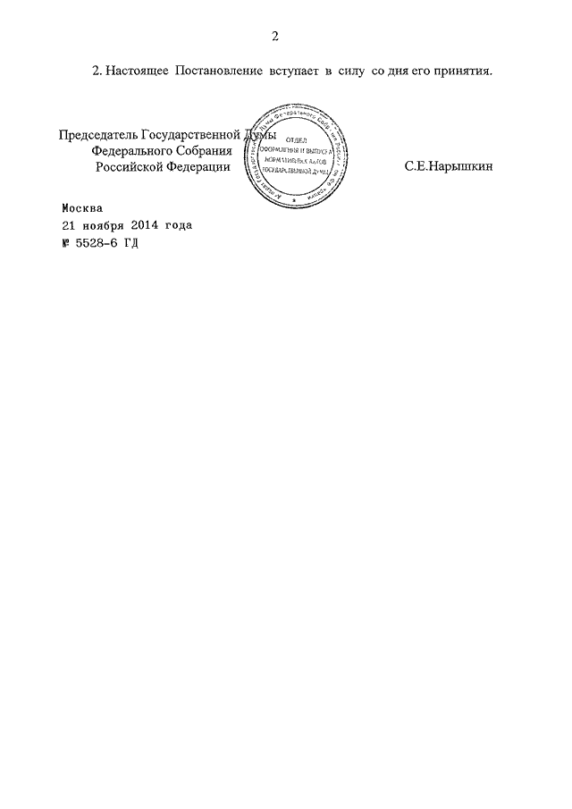ПОСТАНОВЛЕНИЕ ГД ФС РФ от 21.11.2014 N 5528-6 ГД