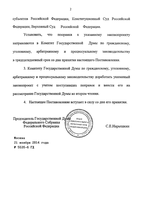ПОСТАНОВЛЕНИЕ ГД ФС РФ от 21.11.2014 N 5535-6 ГД