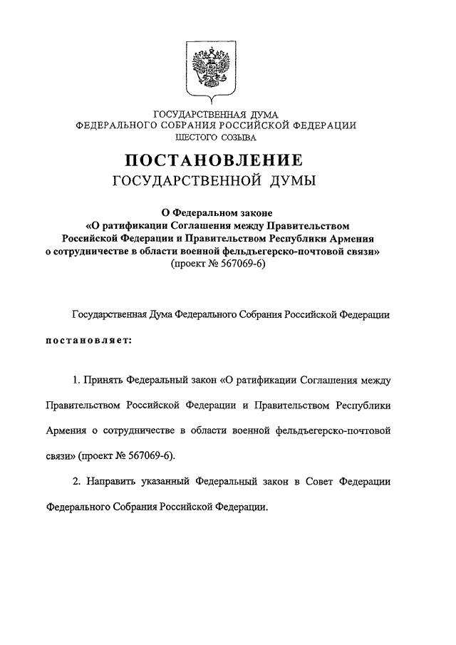 ПОЧТОВОЙ СВЯЗИ" (ПРОЕКТ N 567069-6)"