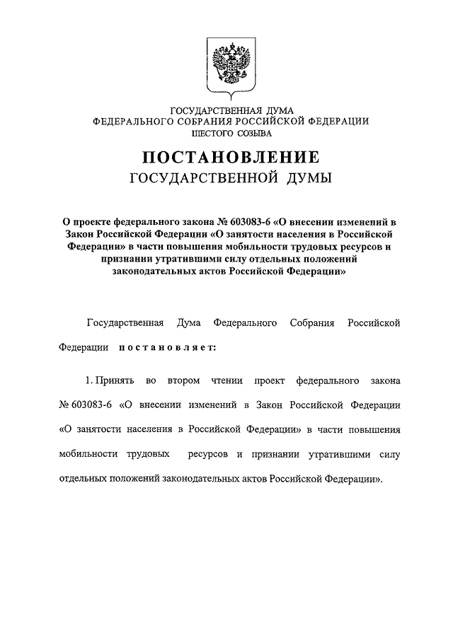 ФЕДЕРАЦИИ" В ЧАСТИ ПОВЫШЕНИЯ МОБИЛЬНОСТИ ТРУДОВЫХ РЕСУРСОВ И