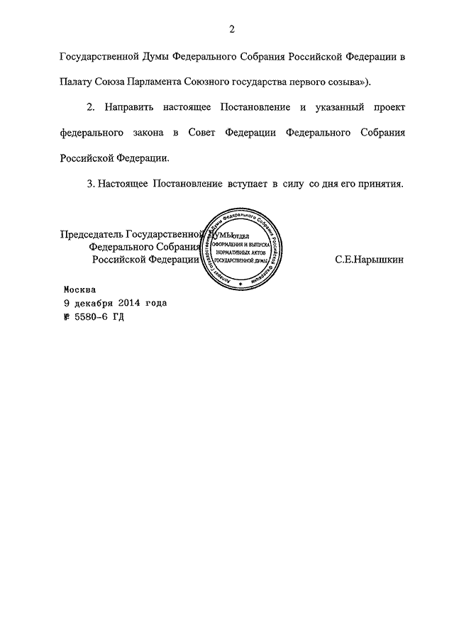 ПОСТАНОВЛЕНИЕ ГД ФС РФ от 09.12.2014 N 5580-6 ГД