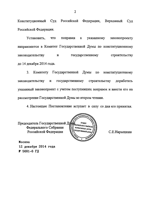 ПОСТАНОВЛЕНИЕ ГД ФС РФ от 12.12.2014 N 5681-6 ГД