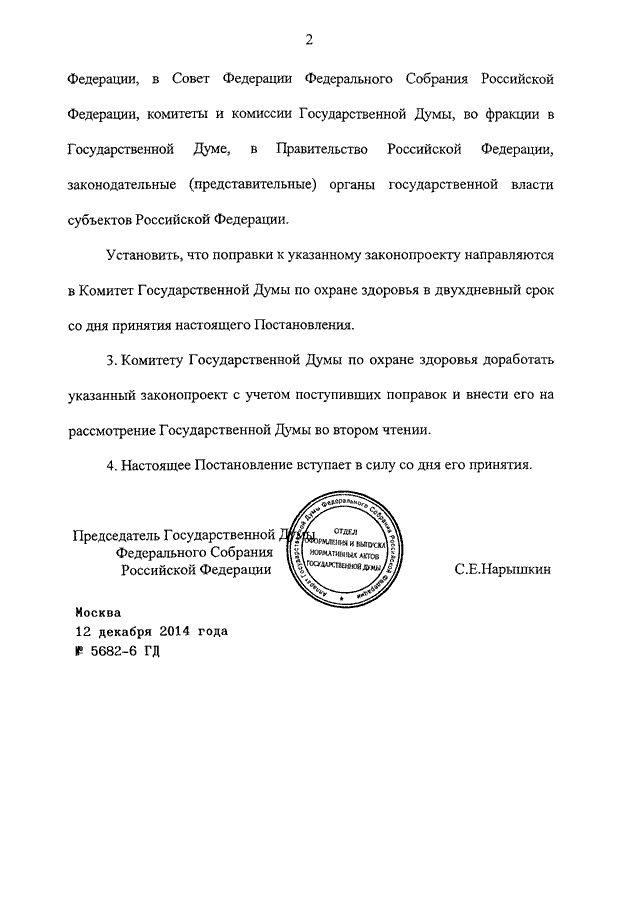 ПОСТАНОВЛЕНИЕ ГД ФС РФ от 12.12.2014 N 5682-6 ГД