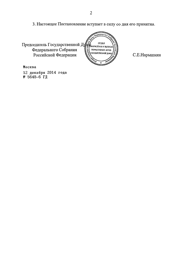 ПОСТАНОВЛЕНИЕ ГД ФС РФ от 12.12.2014 N 5648-6 ГД