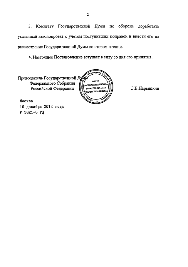 ПОСТАНОВЛЕНИЕ ГД ФС РФ от 10.12.2014 N 5621-6 ГД