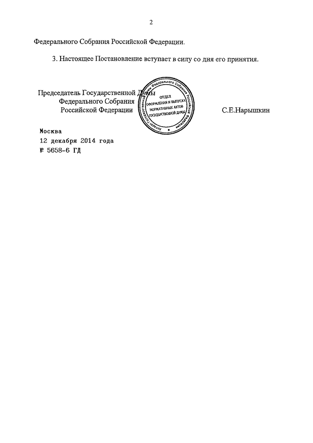 ПОСТАНОВЛЕНИЕ ГД ФС РФ от 12.12.2014 N 5658-6 ГД