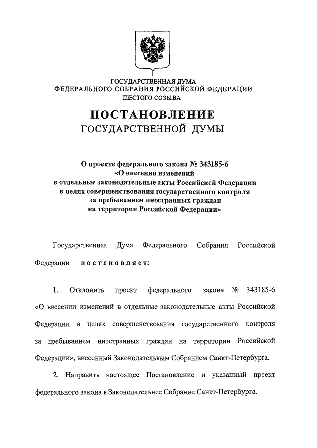 "О ПРОЕКТЕ ФЕДЕРАЛЬНОГО ЗАКОНА N 343185-6 "О ВНЕСЕНИИ ИЗМЕНЕНИЙ В