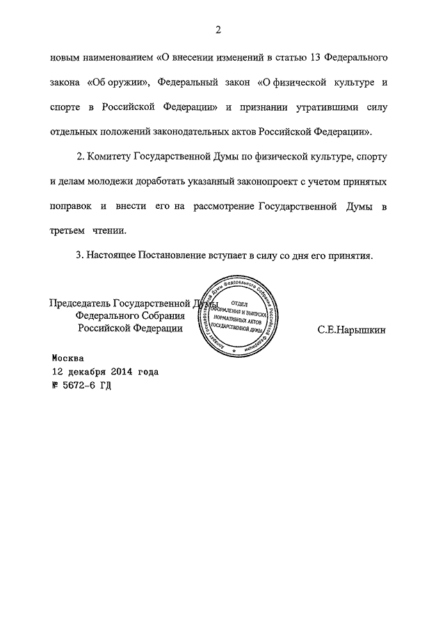 ПОСТАНОВЛЕНИЕ ГД ФС РФ от 12.12.2014 N 5672-6 ГД