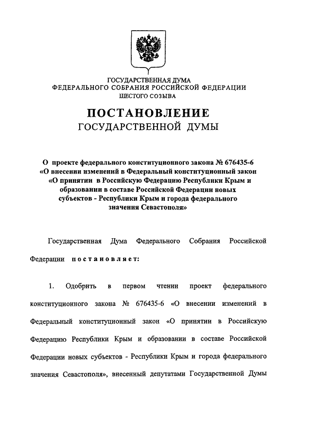 "О ПРОЕКТЕ ФЕДЕРАЛЬНОГО КОНСТИТУЦИОННОГО ЗАКОНА N 676435-6 "О