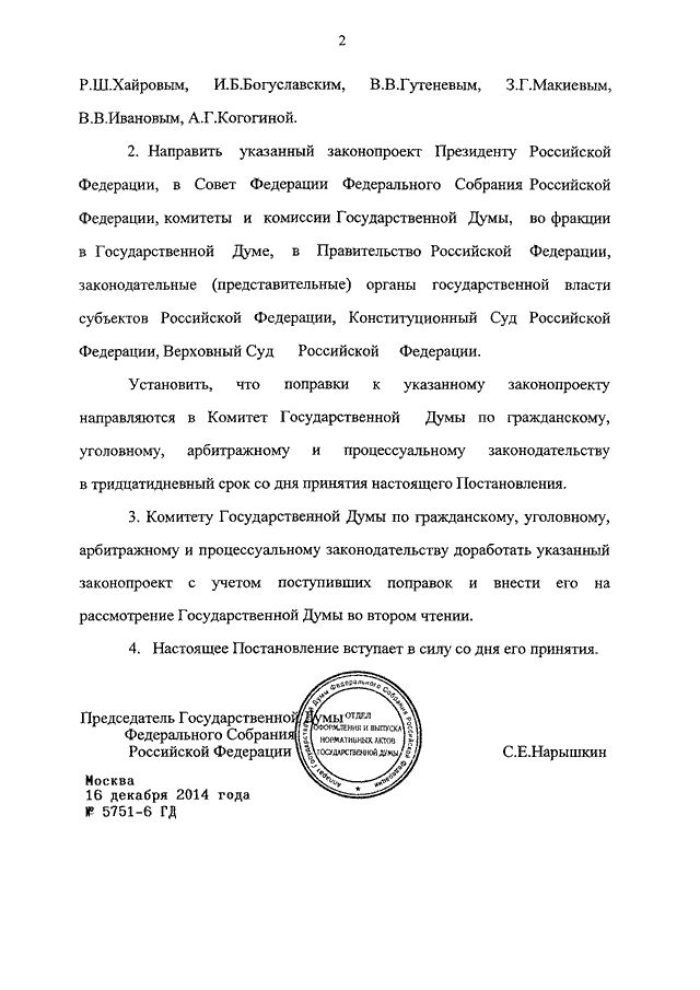 ПОСТАНОВЛЕНИЕ ГД ФС РФ от 16.12.2014 N 5751-6 ГД
