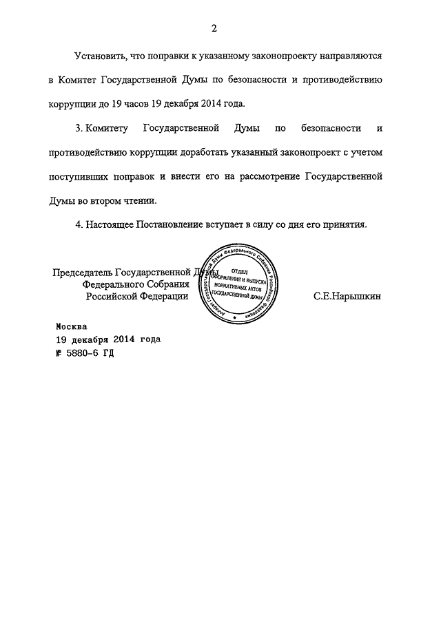 ПОСТАНОВЛЕНИЕ ГД ФС РФ от 19.12.2014 N 5880-6 ГД