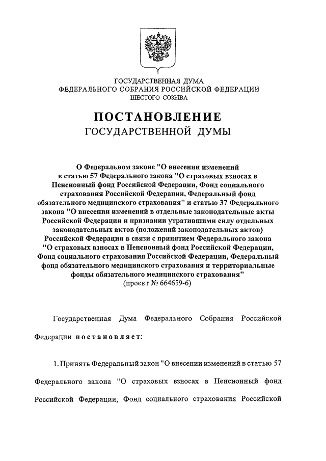 "О ФЕДЕРАЛЬНОМ ЗАКОНЕ "О ВНЕСЕНИИ ИЗМЕНЕНИЙ В СТАТЬЮ 57
