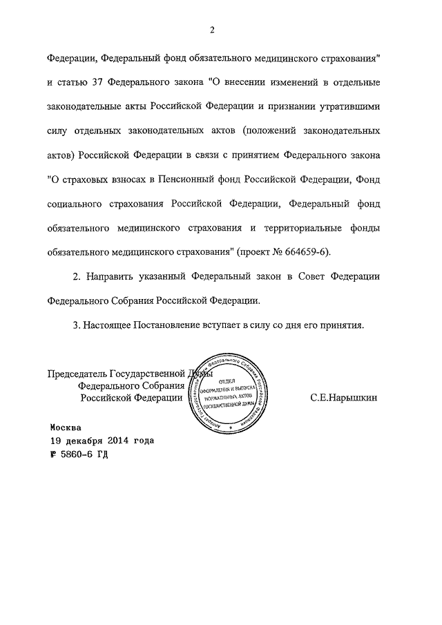 ПОСТАНОВЛЕНИЕ ГД ФС РФ от 19.12.2014 N 5860-6 ГД