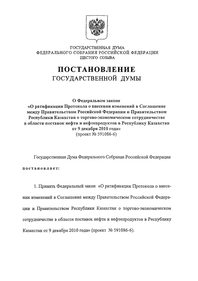 РЕСПУБЛИКУ КАЗАХСТАН ОТ 9 ДЕКАБРЯ 2010 ГОДА" (ПРОЕКТ N 591086-6)"