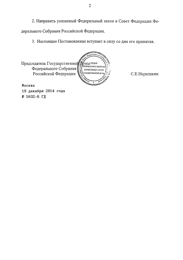 ПОСТАНОВЛЕНИЕ ГД ФС РФ от 19.12.2014 N 5832-6 ГД