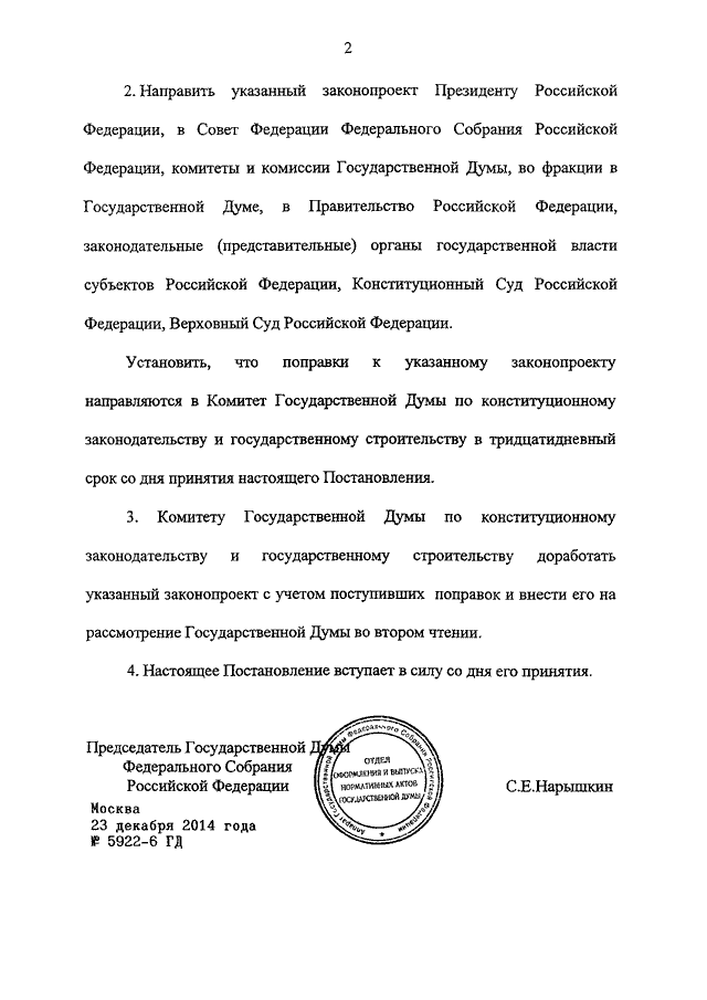 ПОСТАНОВЛЕНИЕ ГД ФС РФ от 23.12.2014 N 5922-6 ГД