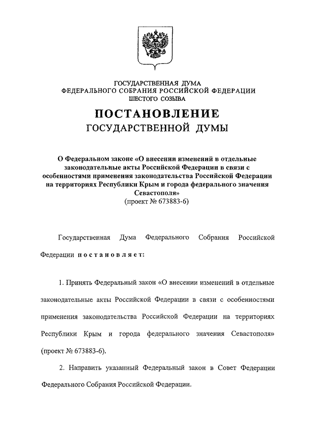 ПОСТАНОВЛЕНИЕ ГД ФС РФ от 23.12.2014 N 5898-6 ГД