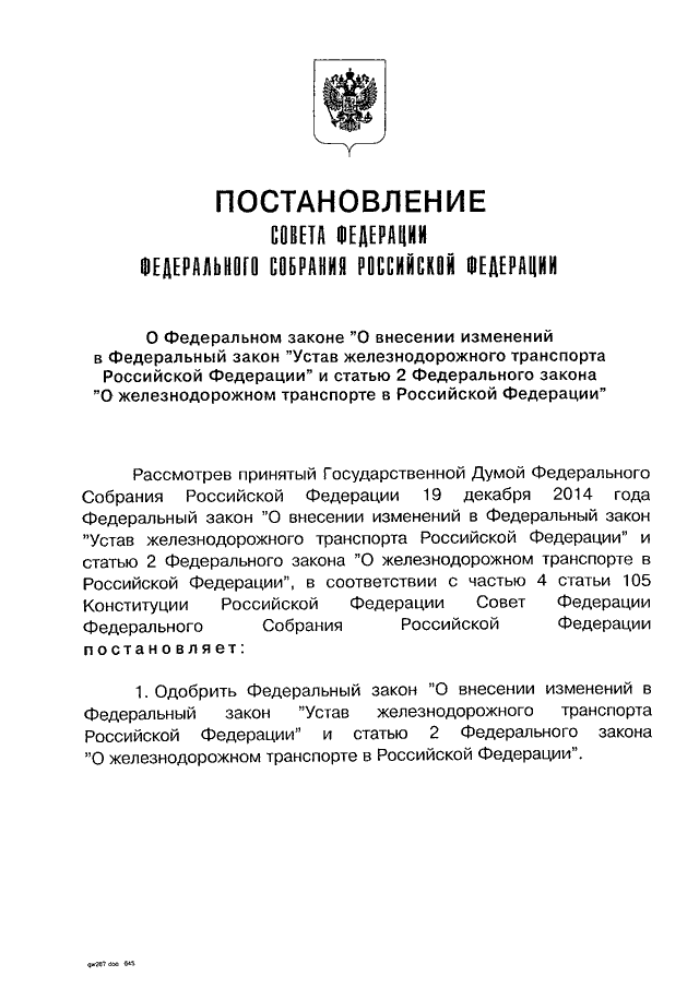 "УСТАВ ЖЕЛЕЗНОДОРОЖНОГО ТРАНСПОРТА РОССИЙСКОЙ ФЕДЕРАЦИИ" И СТАТЬЮ