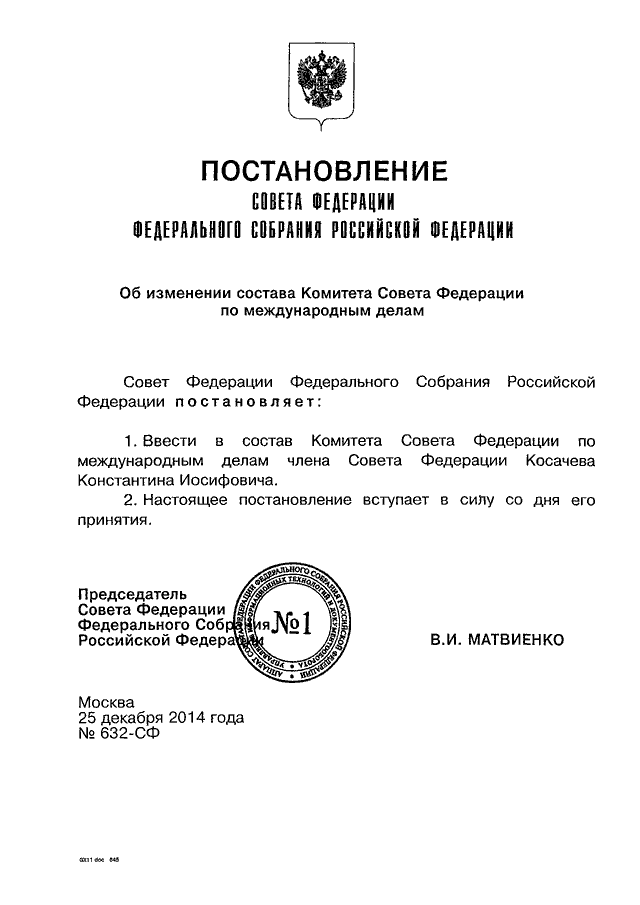 ПОСТАНОВЛЕНИЕ СФ ФС РФ от 25.12.2014 N 632-СФ