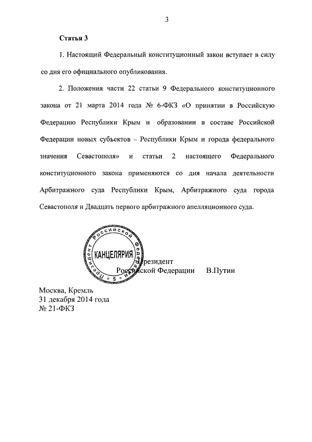 ФЕДЕРАЛЬНЫЙ КОНСТИТУЦИОННЫЙ ЗАКОН от 31.12.2014 N 21-ФКЗ