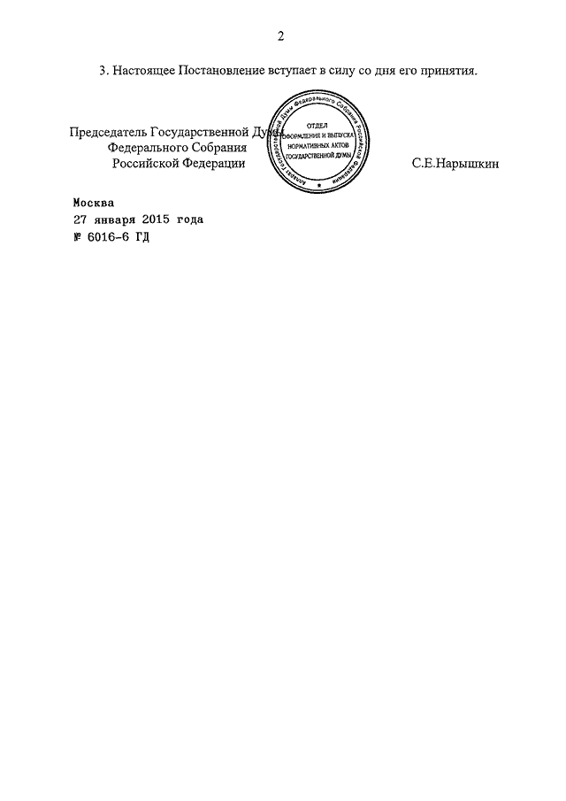 ПОСТАНОВЛЕНИЕ ГД ФС РФ от 27.01.2015 N 6016-6 ГД