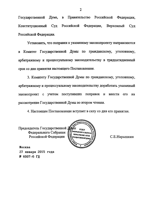 ПОСТАНОВЛЕНИЕ ГД ФС РФ от 27.01.2015 N 6007-6 ГД