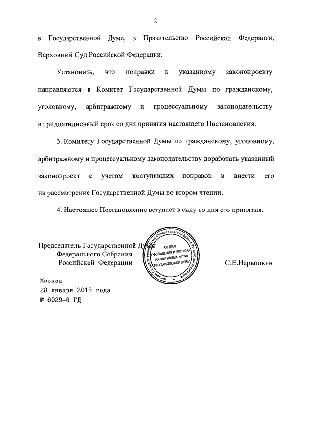 ПОСТАНОВЛЕНИЕ ГД ФС РФ от 28.01.2015 N 6029-6 ГД