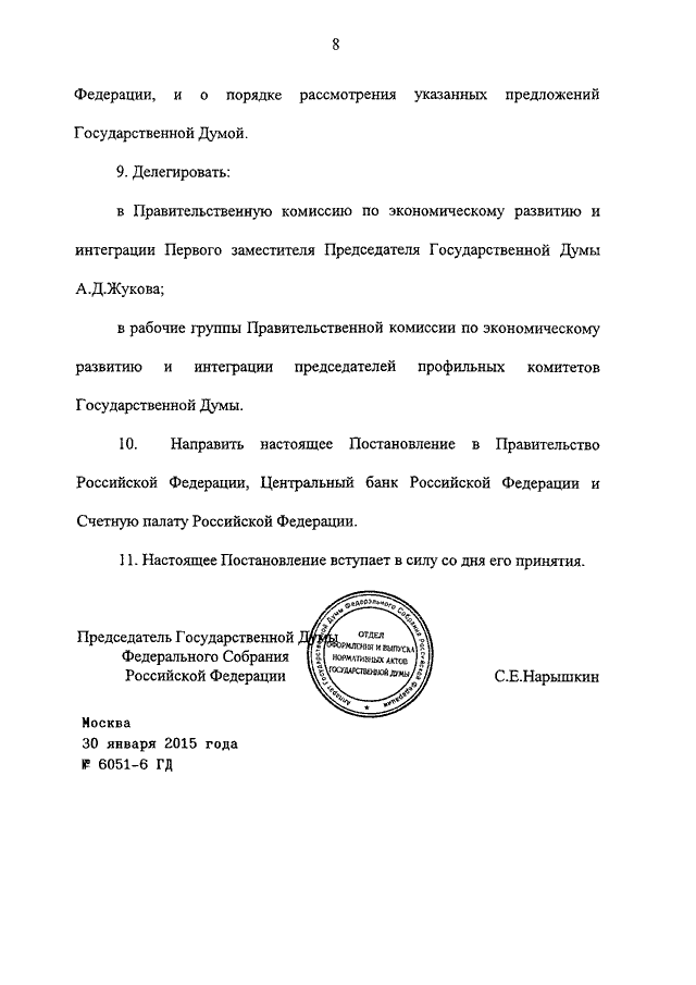 ПОСТАНОВЛЕНИЕ ГД ФС РФ от 30.01.2015 N 6051-6 ГД