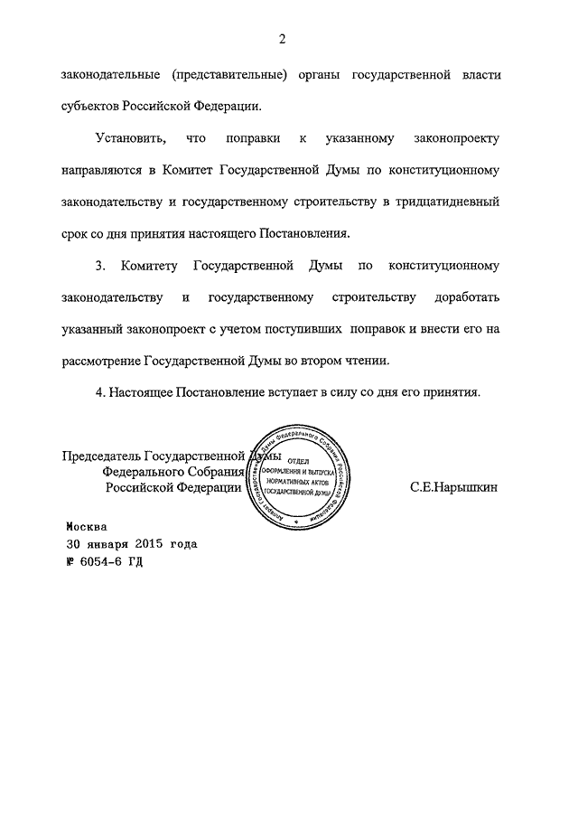 ПОСТАНОВЛЕНИЕ ГД ФС РФ от 30.01.2015 N 6054-6 ГД