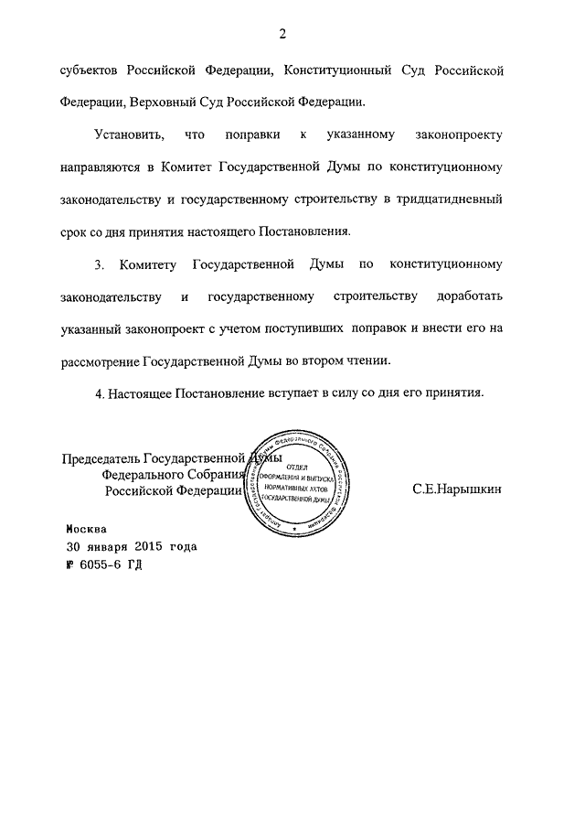 ПОСТАНОВЛЕНИЕ ГД ФС РФ от 30.01.2015 N 6055-6 ГД