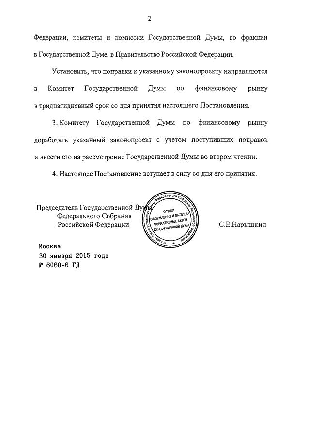 ПОСТАНОВЛЕНИЕ ГД ФС РФ от 30.01.2015 N 6060-6 ГД