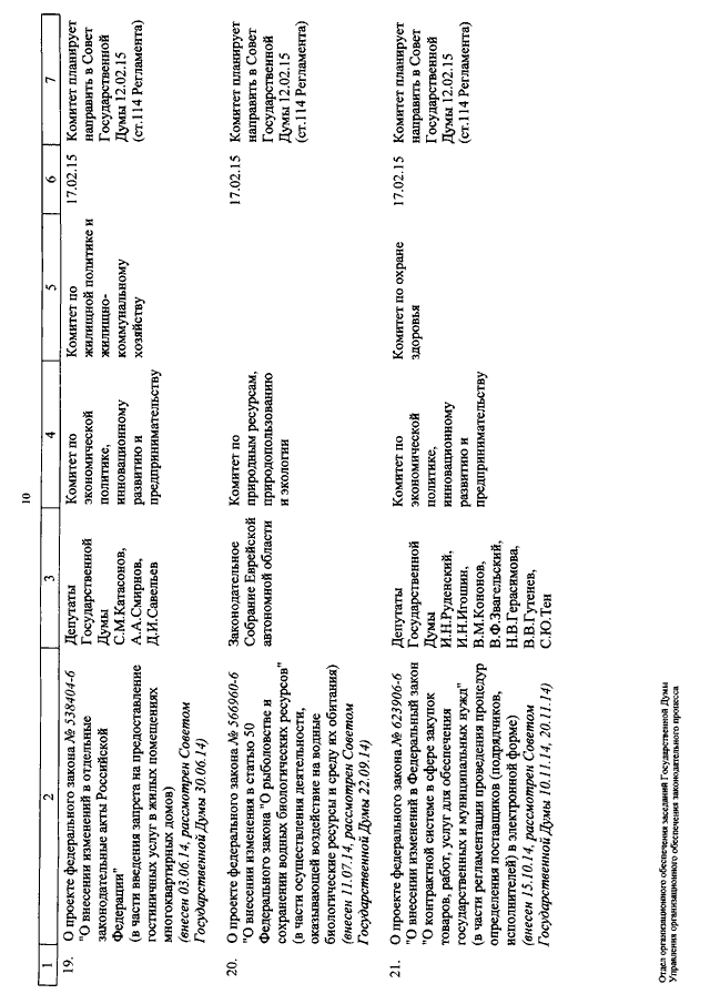 "О КАЛЕНДАРЕ РАССМОТРЕНИЯ ВОПРОСОВ ГОСУДАРСТВЕННОЙ ДУМОЙ С 17 ПО 27 ФЕВРАЛЯ 2015 ГОДА"