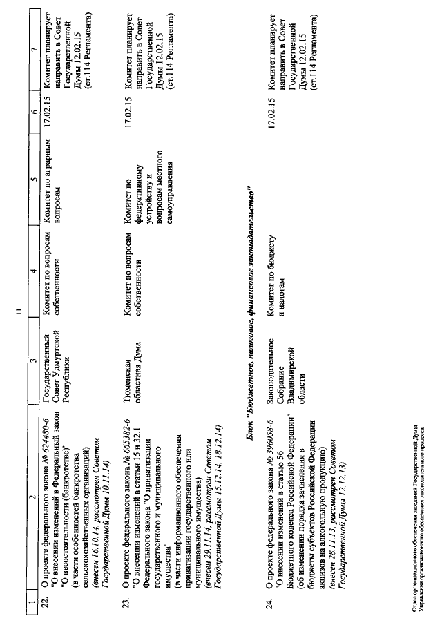 "О КАЛЕНДАРЕ РАССМОТРЕНИЯ ВОПРОСОВ ГОСУДАРСТВЕННОЙ ДУМОЙ С 17 ПО 27 ФЕВРАЛЯ 2015 ГОДА"