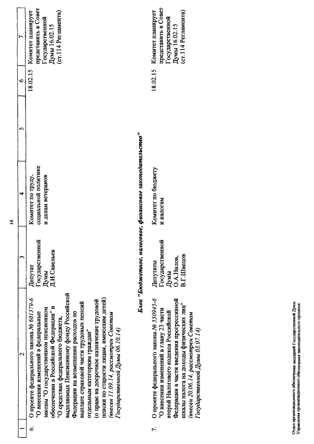 "О КАЛЕНДАРЕ РАССМОТРЕНИЯ ВОПРОСОВ ГОСУДАРСТВЕННОЙ ДУМОЙ С 17 ПО 27 ФЕВРАЛЯ 2015 ГОДА"