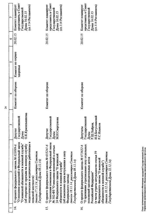 "О КАЛЕНДАРЕ РАССМОТРЕНИЯ ВОПРОСОВ ГОСУДАРСТВЕННОЙ ДУМОЙ С 17 ПО 27 ФЕВРАЛЯ 2015 ГОДА"