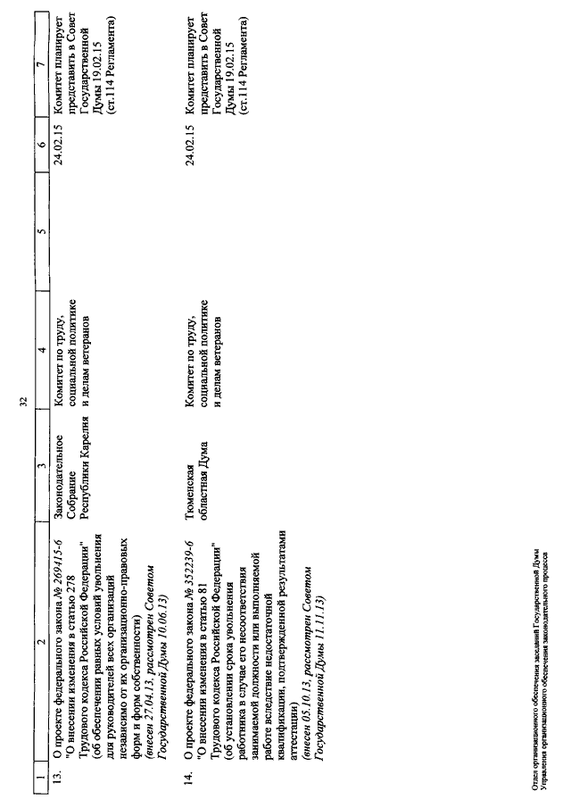 "О КАЛЕНДАРЕ РАССМОТРЕНИЯ ВОПРОСОВ ГОСУДАРСТВЕННОЙ ДУМОЙ С 17 ПО 27 ФЕВРАЛЯ 2015 ГОДА"
