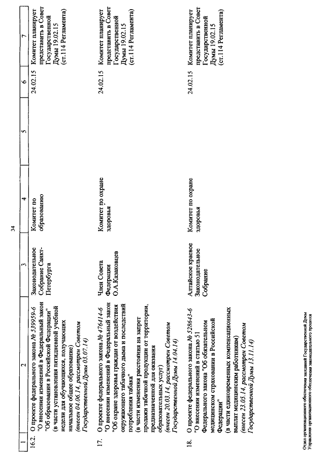 "О КАЛЕНДАРЕ РАССМОТРЕНИЯ ВОПРОСОВ ГОСУДАРСТВЕННОЙ ДУМОЙ С 17 ПО 27 ФЕВРАЛЯ 2015 ГОДА"