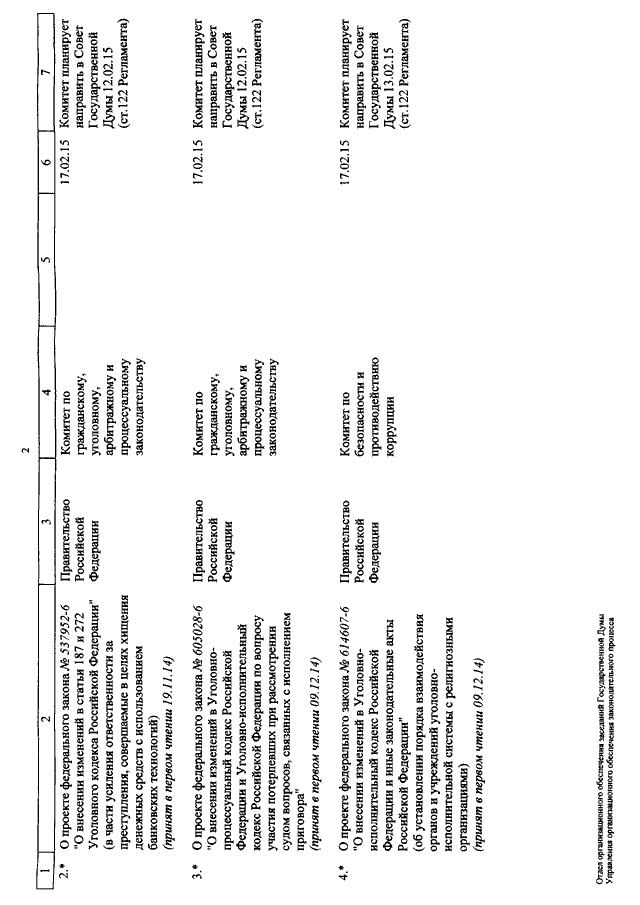 "О КАЛЕНДАРЕ РАССМОТРЕНИЯ ВОПРОСОВ ГОСУДАРСТВЕННОЙ ДУМОЙ С 17 ПО 27 ФЕВРАЛЯ 2015 ГОДА"