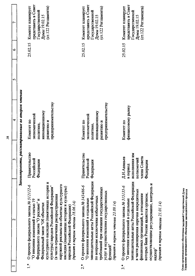 "О КАЛЕНДАРЕ РАССМОТРЕНИЯ ВОПРОСОВ ГОСУДАРСТВЕННОЙ ДУМОЙ С 17 ПО 27 ФЕВРАЛЯ 2015 ГОДА"