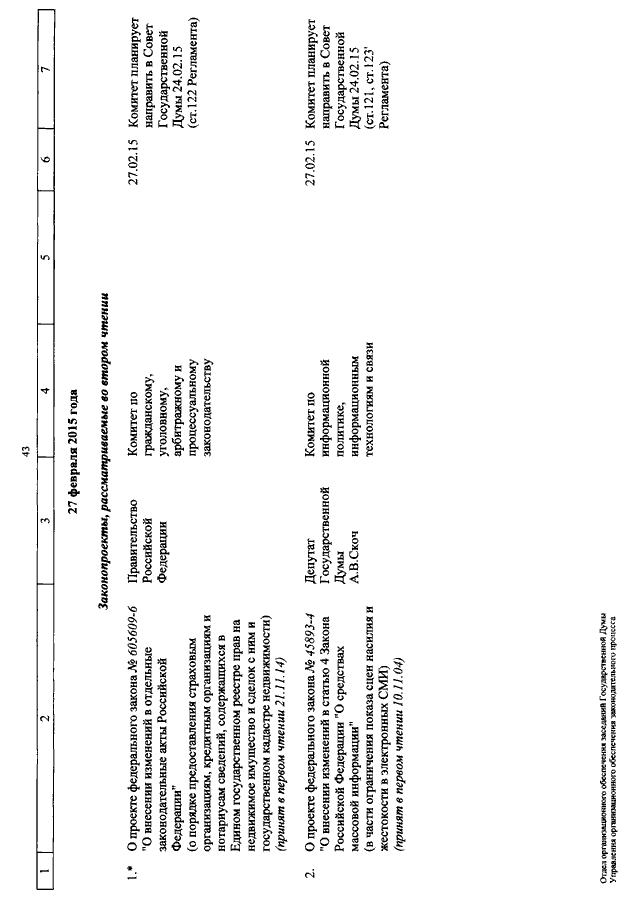 "О КАЛЕНДАРЕ РАССМОТРЕНИЯ ВОПРОСОВ ГОСУДАРСТВЕННОЙ ДУМОЙ С 17 ПО 27 ФЕВРАЛЯ 2015 ГОДА"