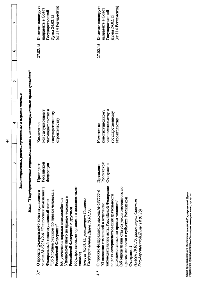 "О КАЛЕНДАРЕ РАССМОТРЕНИЯ ВОПРОСОВ ГОСУДАРСТВЕННОЙ ДУМОЙ С 17 ПО 27 ФЕВРАЛЯ 2015 ГОДА"