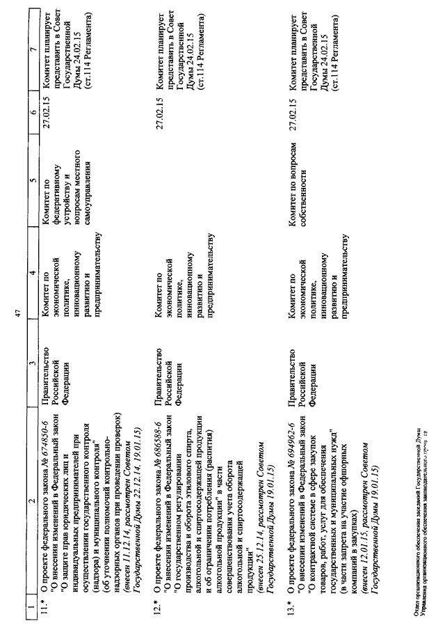 "О КАЛЕНДАРЕ РАССМОТРЕНИЯ ВОПРОСОВ ГОСУДАРСТВЕННОЙ ДУМОЙ С 17 ПО 27 ФЕВРАЛЯ 2015 ГОДА"